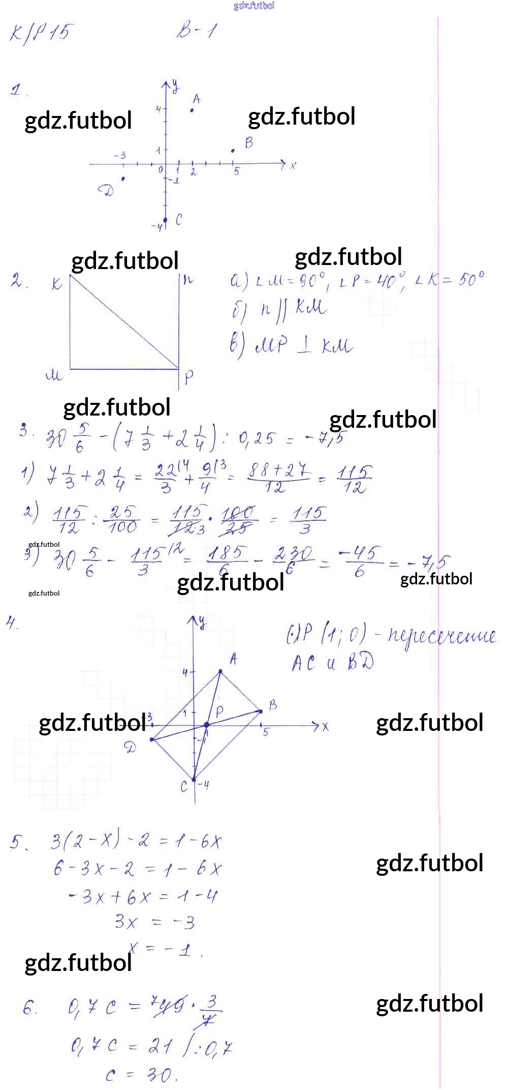 Готовые домашние задания по Математике за 6 класс Дудницын Контрольные работы УМК 2013 ФГОС - КР-15. Варианты 1