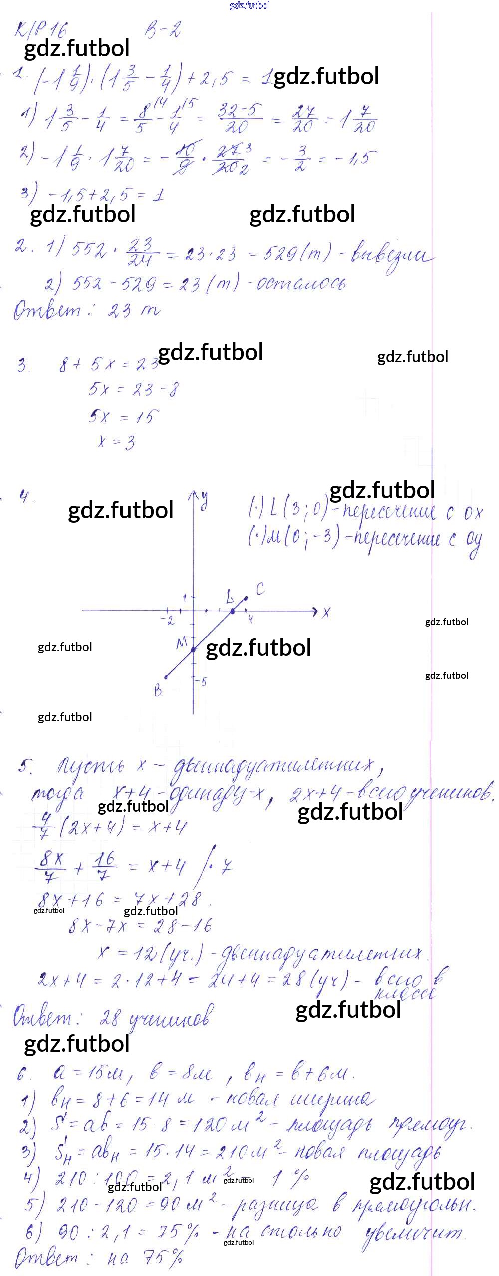 Готовые домашние задания по Математике за 6 класс Дудницын Контрольные работы УМК 2013 ФГОС - КР-16. Варианты 2