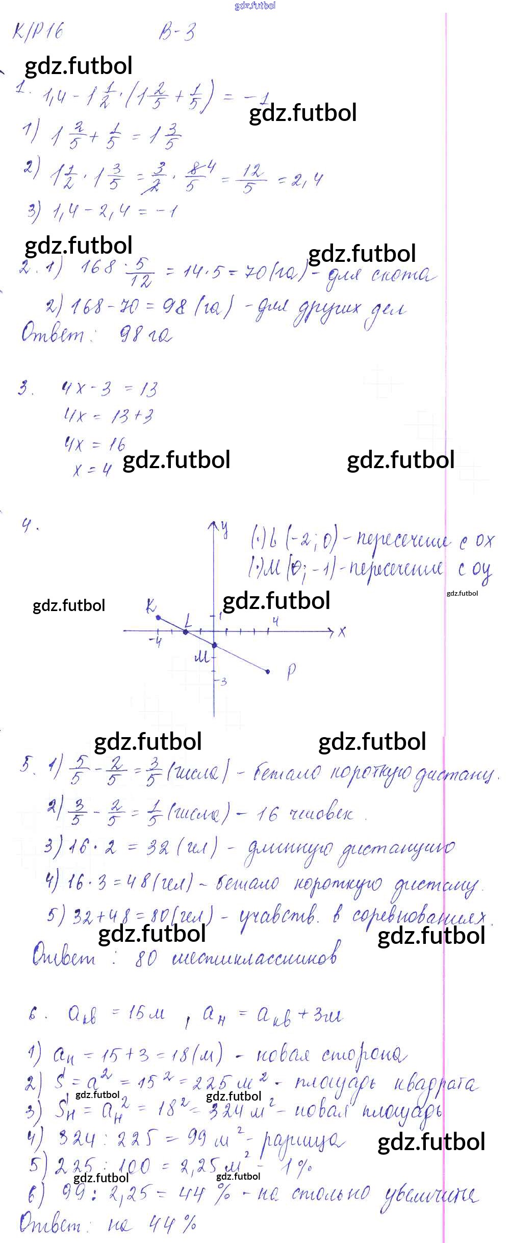 Готовые домашние задания по Математике за 6 класс Дудницын Контрольные работы УМК 2013 ФГОС - КР-16. Варианты 3