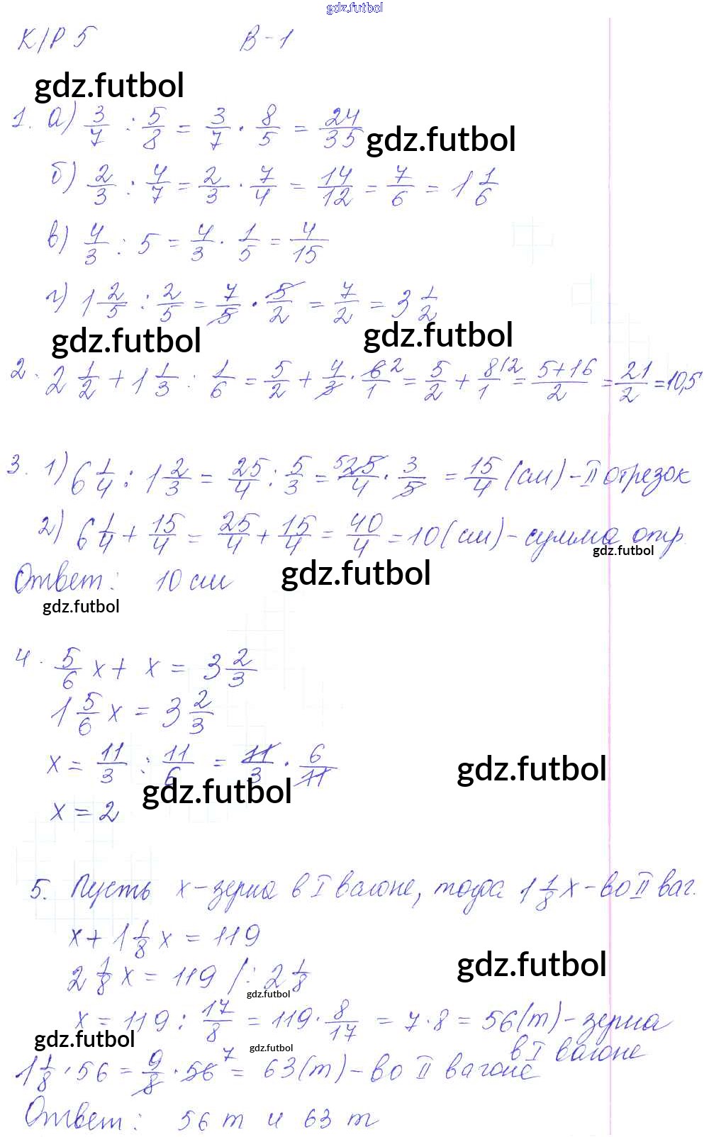 Готовые домашние задания по Математике за 6 класс Дудницын Контрольные работы УМК 2013 ФГОС - КР-5. Варианты 1