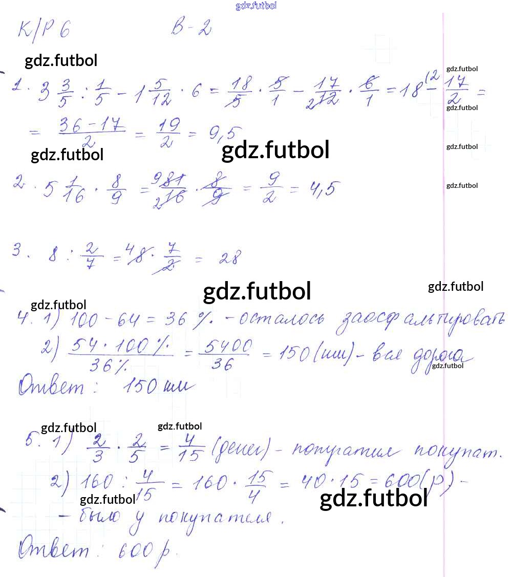 Готовые домашние задания по Математике за 6 класс Дудницын Контрольные работы УМК 2013 ФГОС - КР-6. Варианты 2