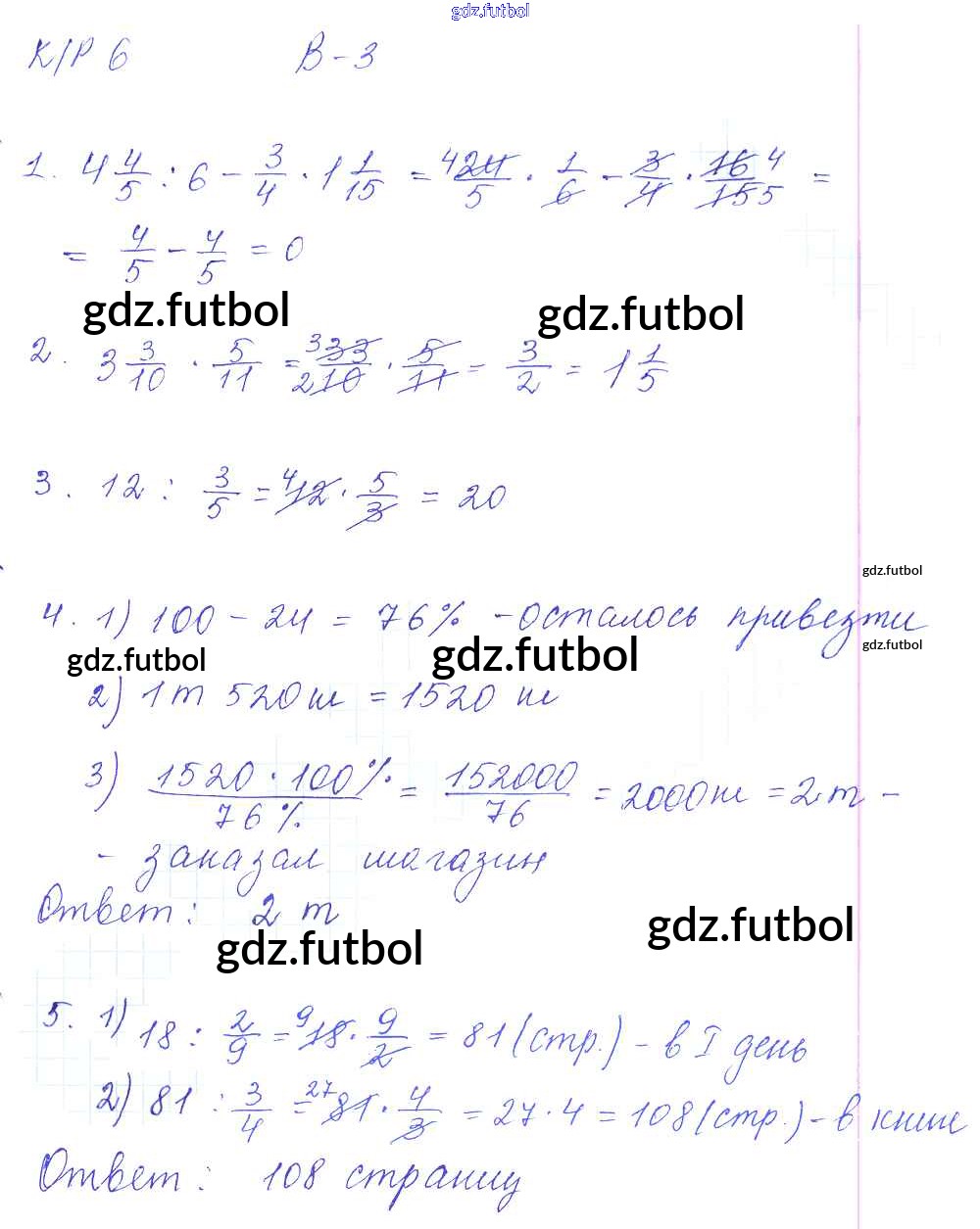 Готовые домашние задания по Математике за 6 класс Дудницын Контрольные работы УМК 2013 ФГОС - КР-6. Варианты 3