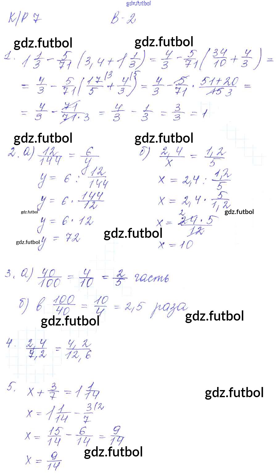 Готовые домашние задания по Математике за 6 класс Дудницын Контрольные работы УМК 2013 ФГОС - КР-7. Варианты 2