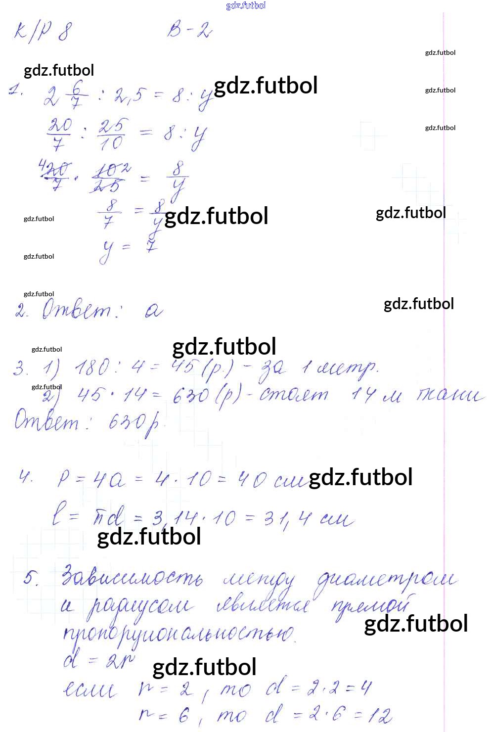 Готовые домашние задания по Математике за 6 класс Дудницын Контрольные работы УМК 2013 ФГОС - КР-8. Варианты 2