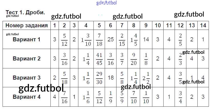 Готовые домашние задания по Математике за 6 класс Кузнецова Тематические тесты 2018 ФГОС - Тесты 1