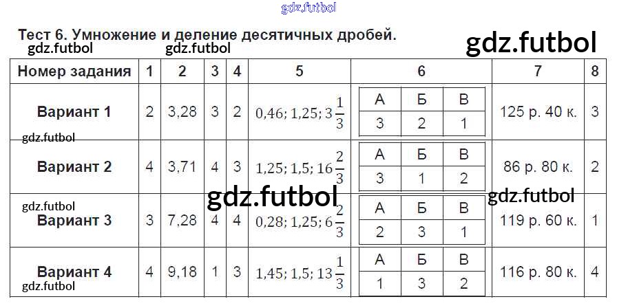 Готовые домашние задания по Математике за 6 класс Кузнецова Тематические тесты 2018 ФГОС - Тесты 6
