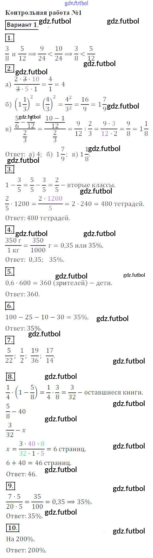 Готовые домашние задания по Математике за 6 класс Кузнецова Контрольные работы 2017 ФГОС - КР-1. Варианты 1