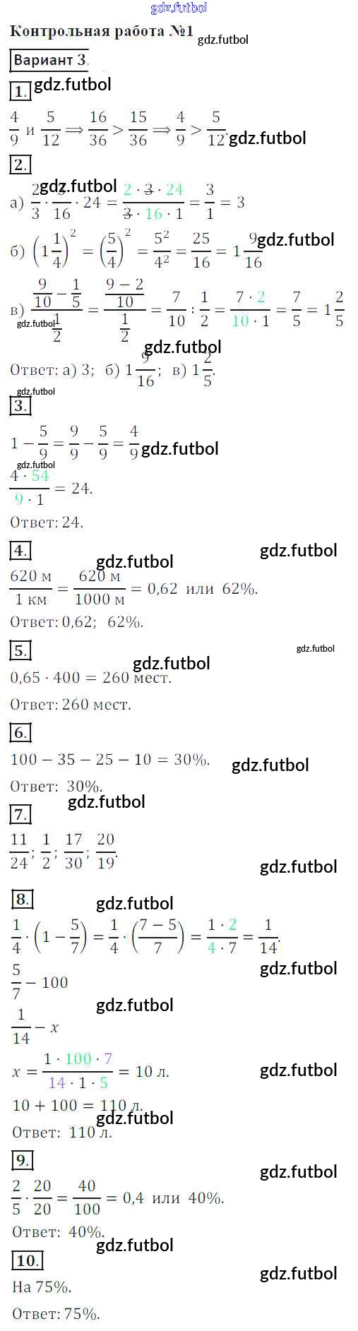 Готовые домашние задания по Математике за 6 класс Кузнецова Контрольные работы 2017 ФГОС - КР-1. Варианты 3