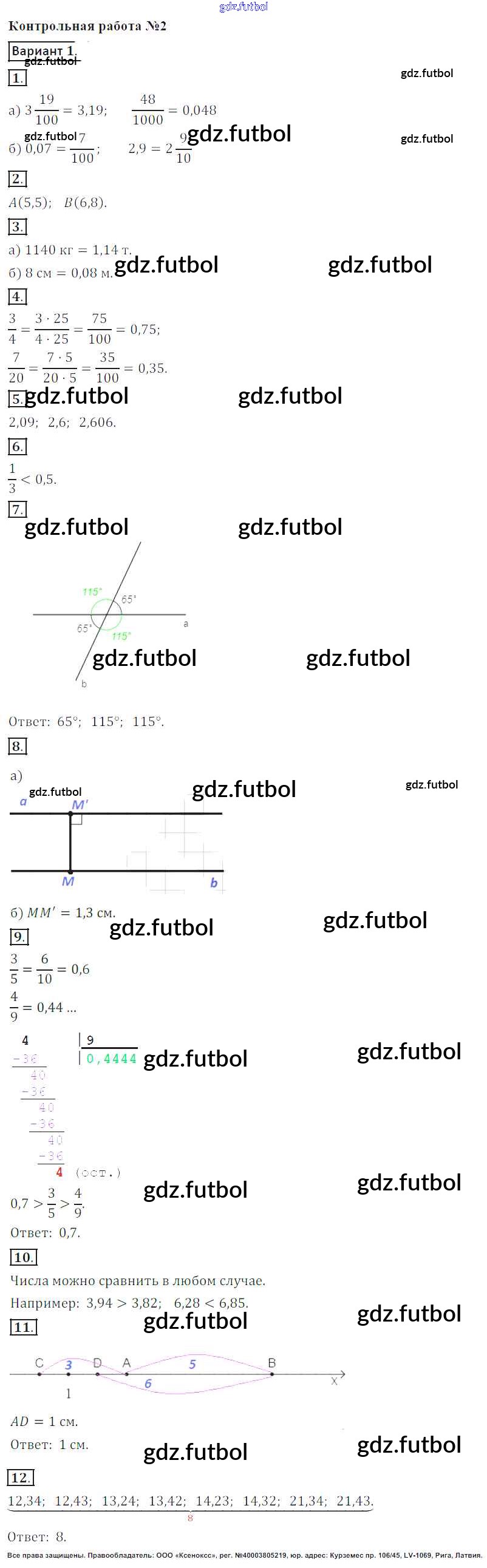 Готовые домашние задания по Математике за 6 класс Кузнецова Контрольные работы 2017 ФГОС - КР-2. Варианты 1