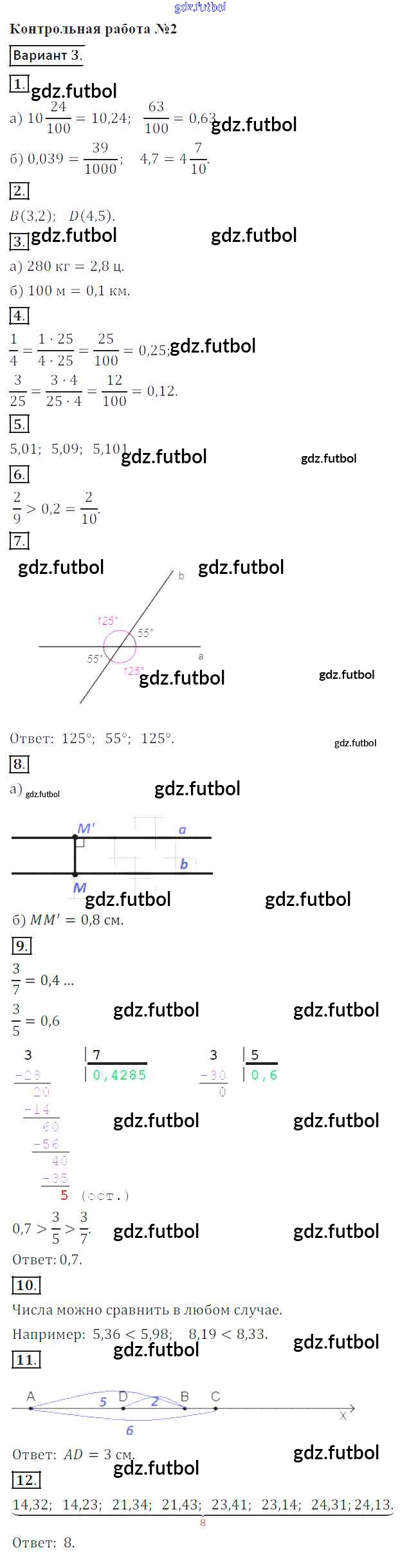 Готовые домашние задания по Математике за 6 класс Кузнецова Контрольные работы 2017 ФГОС - КР-2. Варианты 3