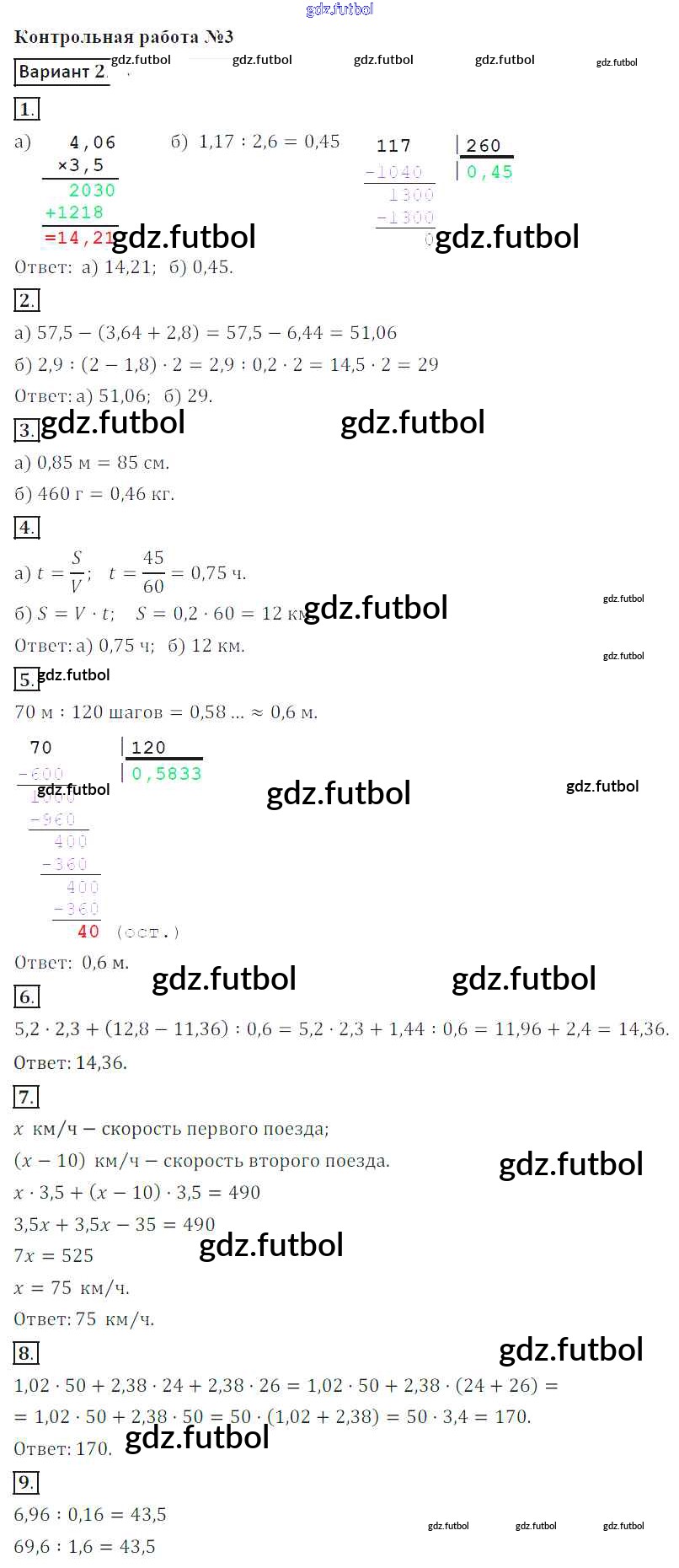 Готовые домашние задания по Математике за 6 класс Кузнецова Контрольные работы 2017 ФГОС - КР-3. Варианты 2