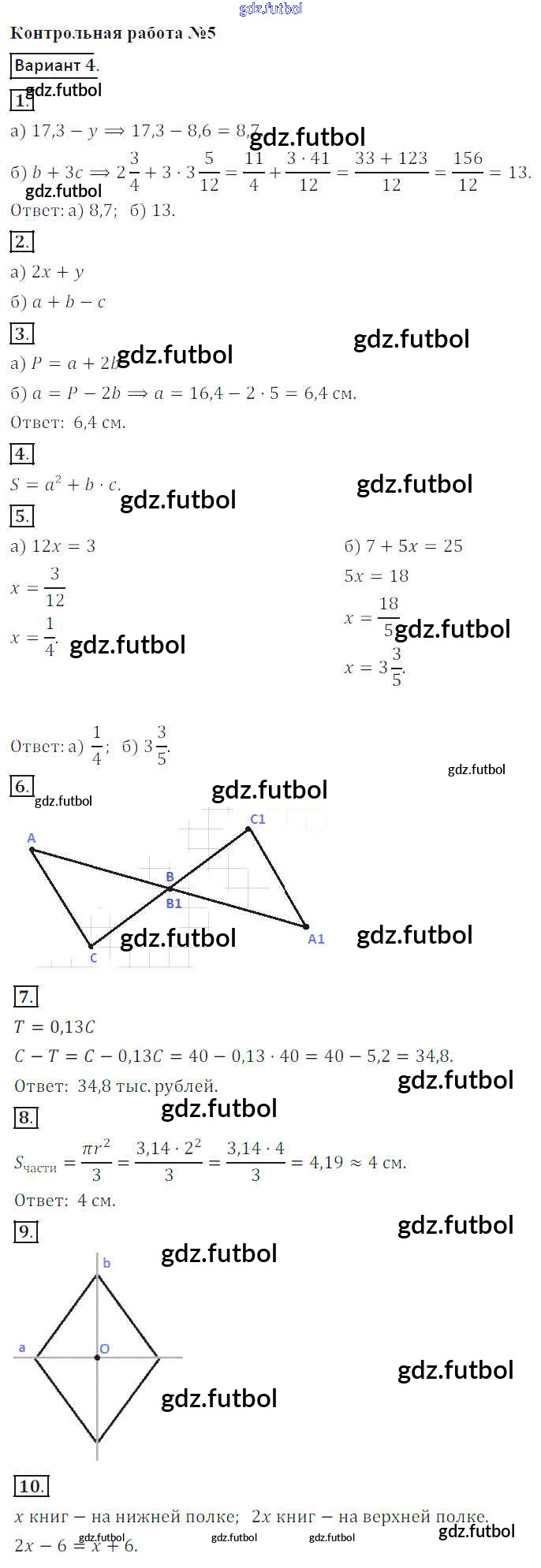 Готовые домашние задания по Математике за 6 класс Кузнецова Контрольные работы 2017 ФГОС - КР-5. Варианты 4