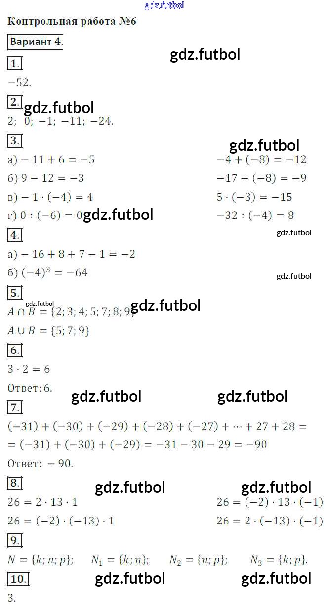 Готовые домашние задания по Математике за 6 класс Кузнецова Контрольные работы 2017 ФГОС - КР-6. Варианты 4
