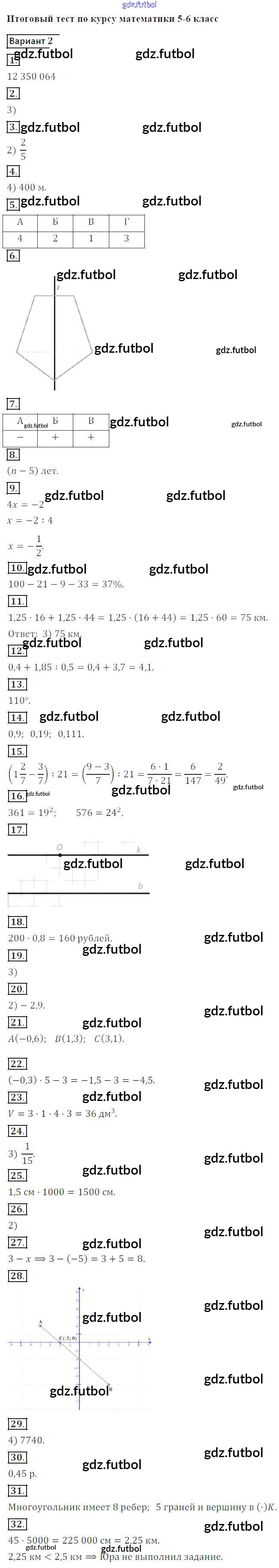 Готовые домашние задания по Математике за 6 класс Кузнецова Контрольные работы 2017 ФГОС - Итоговый тест 2