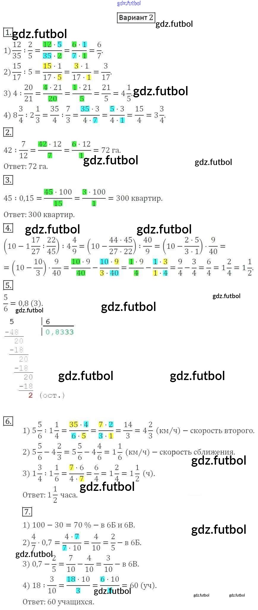 Готовые домашние задания по Математике за 6 класс Мерзляк Дидактические материалы Алгоритм успеха 2017 ФГОС - КР-4. Варианты 2