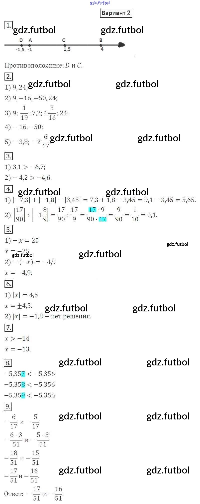 Готовые домашние задания по Математике за 6 класс Мерзляк Дидактические материалы Алгоритм успеха 2017 ФГОС - КР-7. Варианты 2