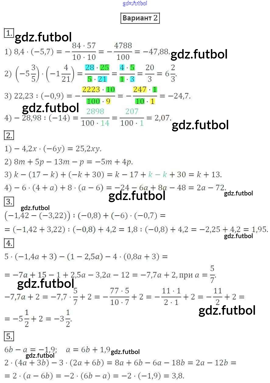 Готовые домашние задания по Математике за 6 класс Мерзляк Дидактические материалы Алгоритм успеха 2017 ФГОС - КР-9. Варианты 2