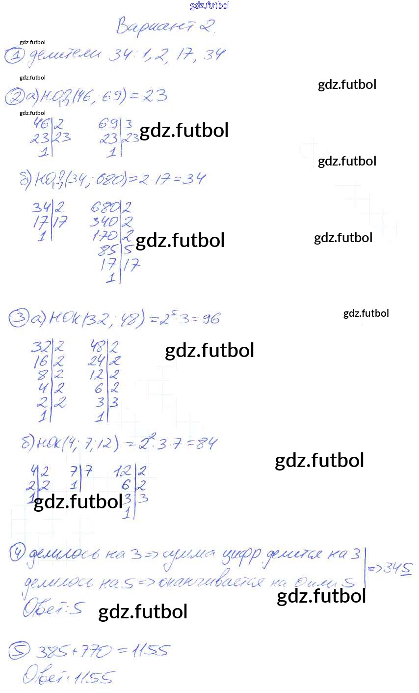 Готовые домашние задания по Математике за 6 класс Попов Самостоятельные и контрольные работы УМК 2017 ФГОС - КР-1. Варианты 2