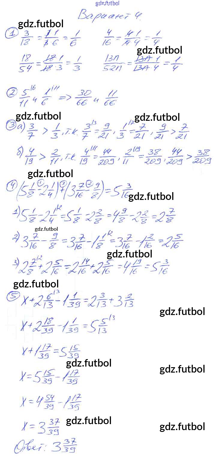 Готовые домашние задания по Математике за 6 класс Попов Самостоятельные и контрольные работы УМК 2017 ФГОС - КР-2. Варианты 4
