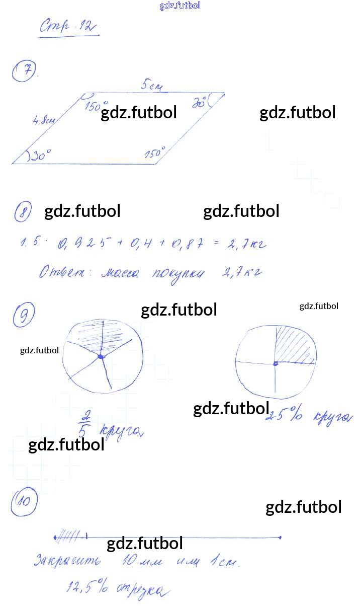 Готовые домашние задания по Математике за 6 класс Рудницкая Рабочая тетрадь УМК 2013 ФГОС - Часть 1. Страницы 12