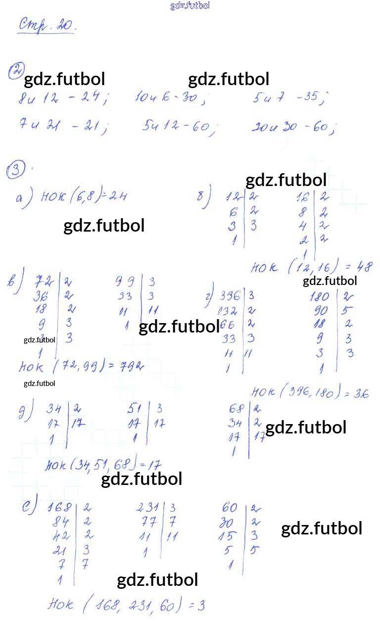 Готовые домашние задания по Математике за 6 класс Рудницкая Рабочая тетрадь УМК 2013 ФГОС - Часть 1. Страницы 20
