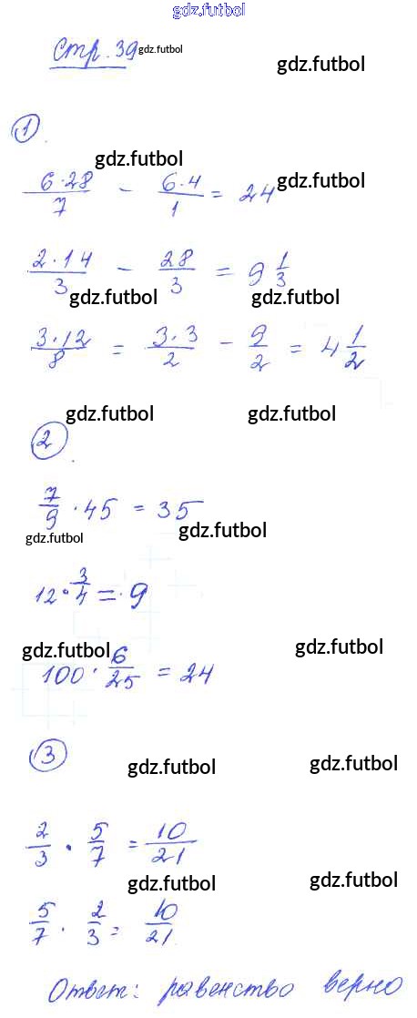 Готовые домашние задания по Математике за 6 класс Рудницкая Рабочая тетрадь УМК 2013 ФГОС - Часть 1. Страницы 39