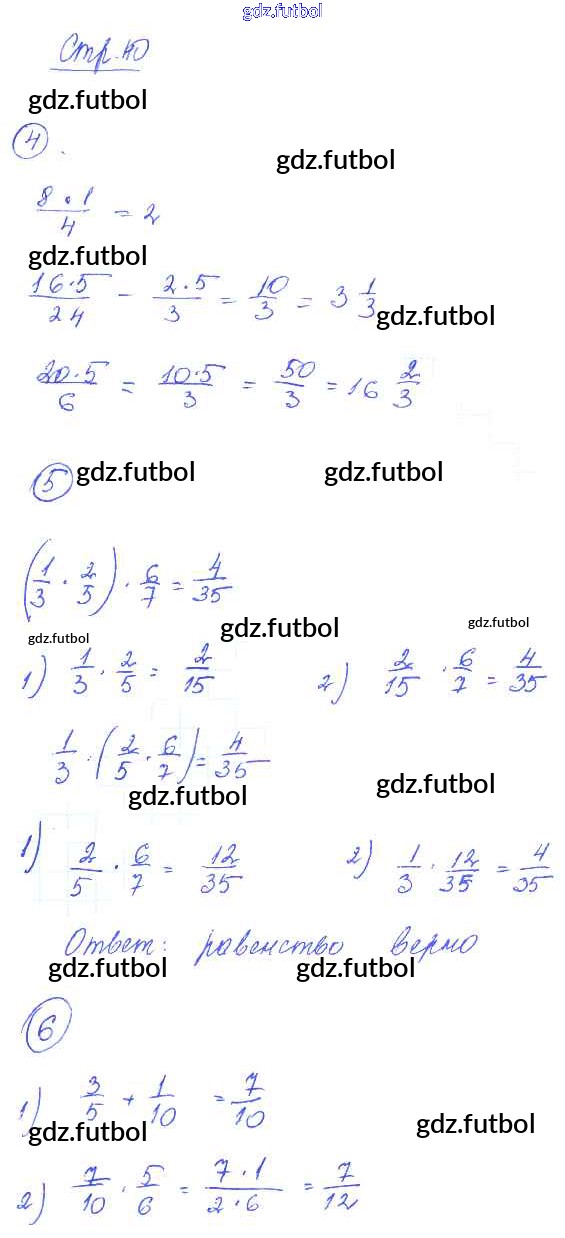 Готовые домашние задания по Математике за 6 класс Рудницкая Рабочая тетрадь УМК 2013 ФГОС - Часть 1. Страницы 40