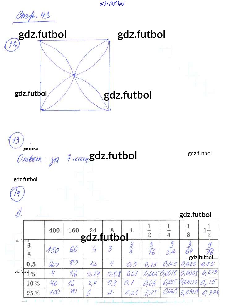 Готовые домашние задания по Математике за 6 класс Рудницкая Рабочая тетрадь УМК 2013 ФГОС - Часть 1. Страницы 43