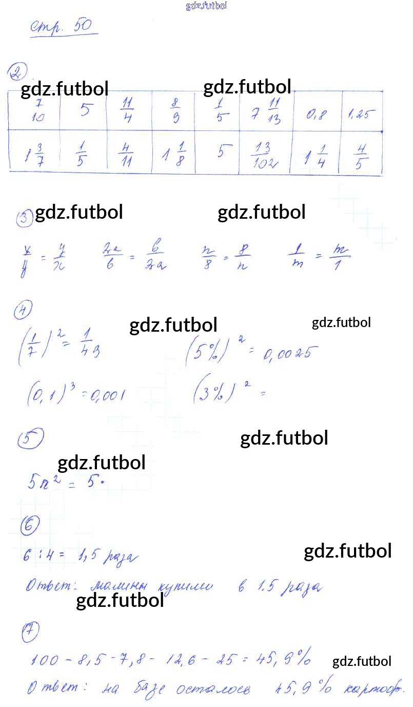 Готовые домашние задания по Математике за 6 класс Рудницкая Рабочая тетрадь УМК 2013 ФГОС - Часть 1. Страницы 50