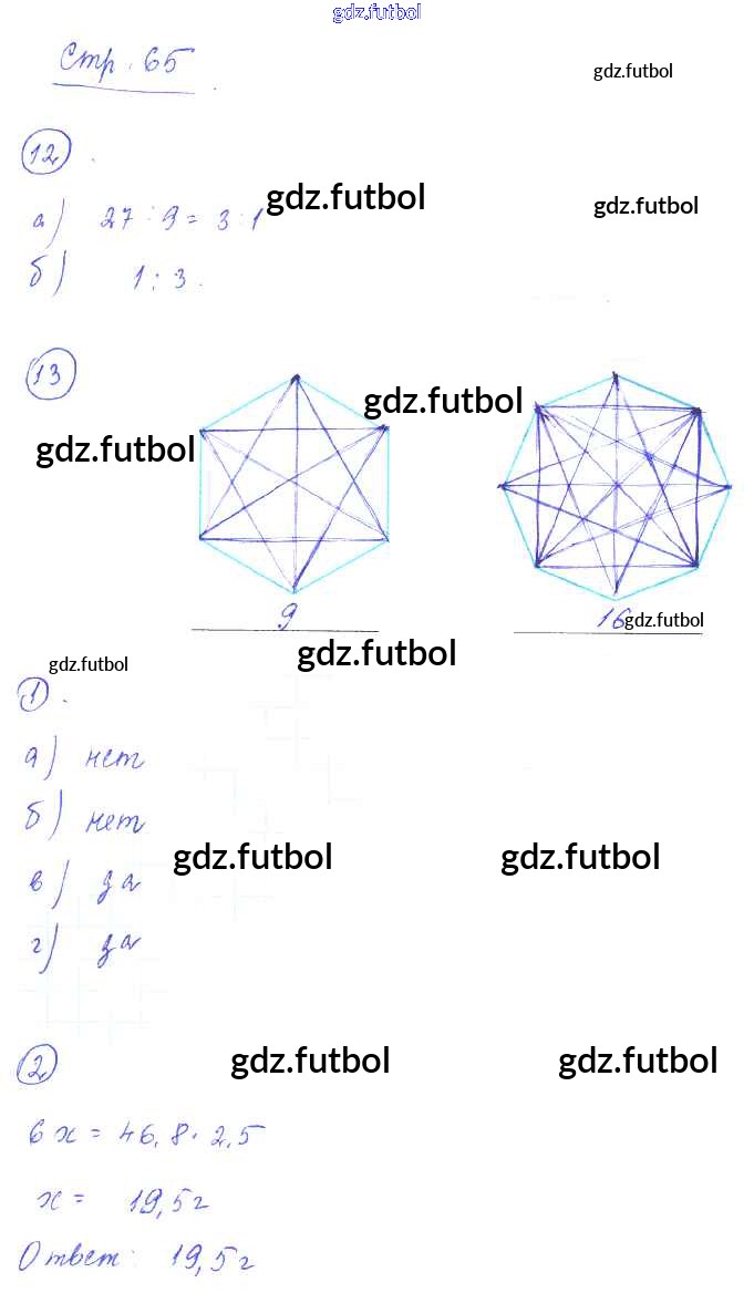 Готовые домашние задания по Математике за 6 класс Рудницкая Рабочая тетрадь УМК 2013 ФГОС - Часть 1. Страницы 65