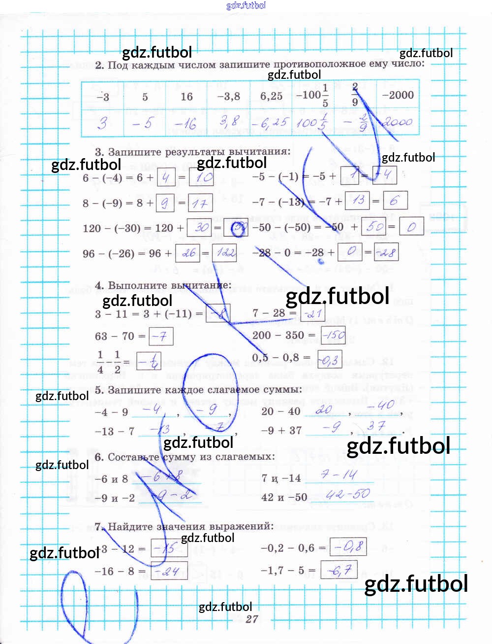 Готовые домашние задания по Математике за 6 класс Рудницкая Рабочая тетрадь УМК 2013 ФГОС - Часть 2. Страницы 27