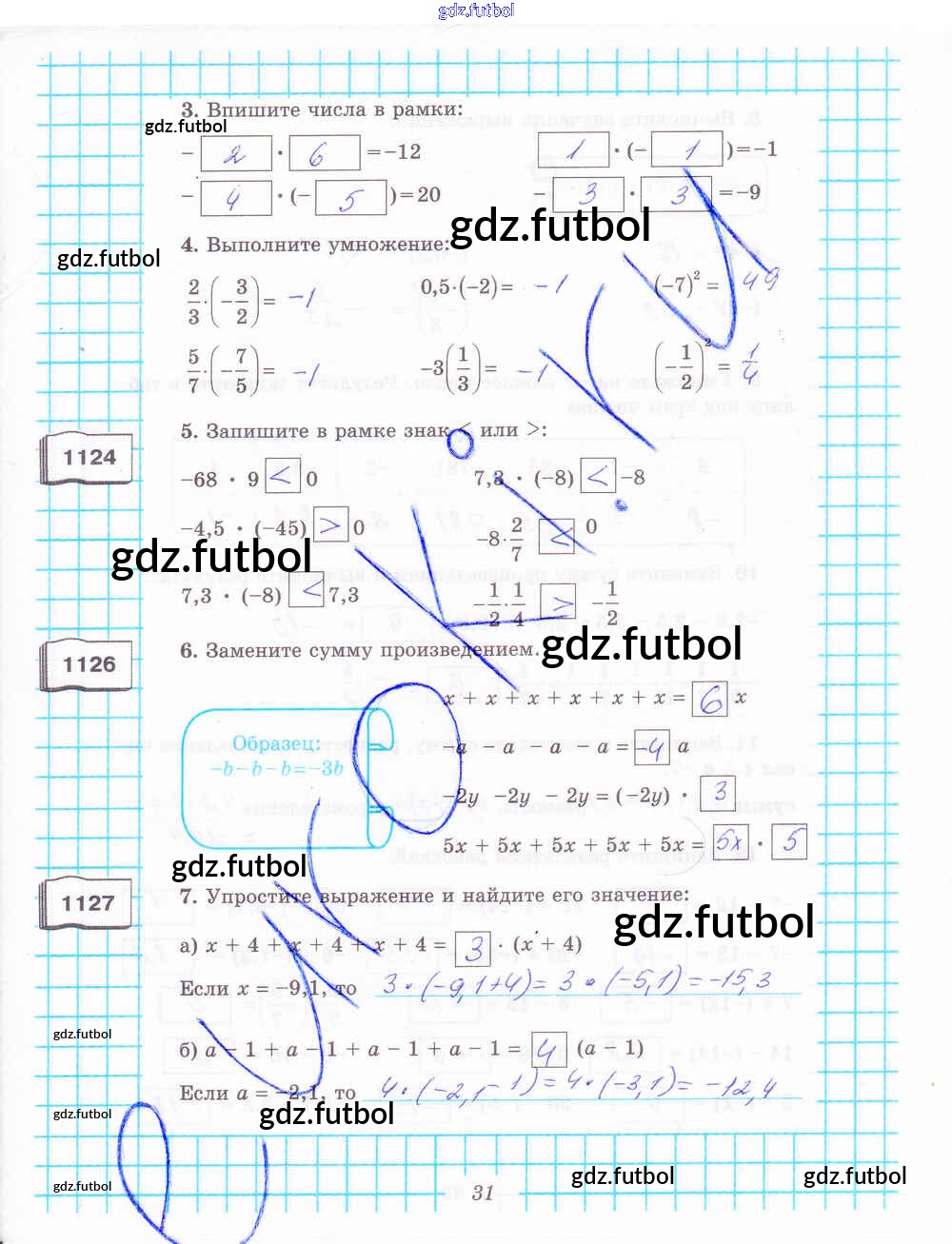 Готовые домашние задания по Математике за 6 класс Рудницкая Рабочая тетрадь УМК 2013 ФГОС - Часть 2. Страницы 31