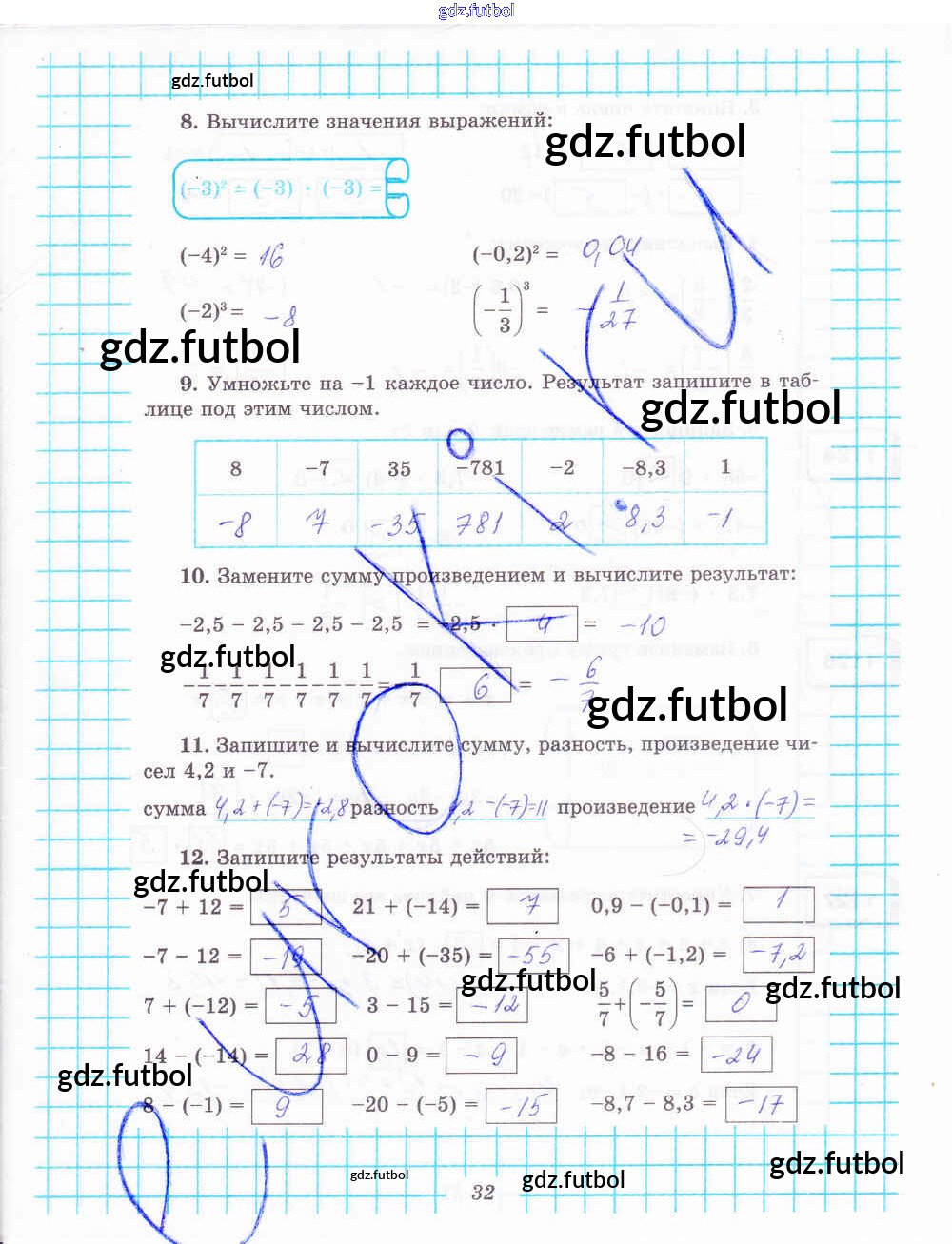 Готовые домашние задания по Математике за 6 класс Рудницкая Рабочая тетрадь УМК 2013 ФГОС - Часть 2. Страницы 32