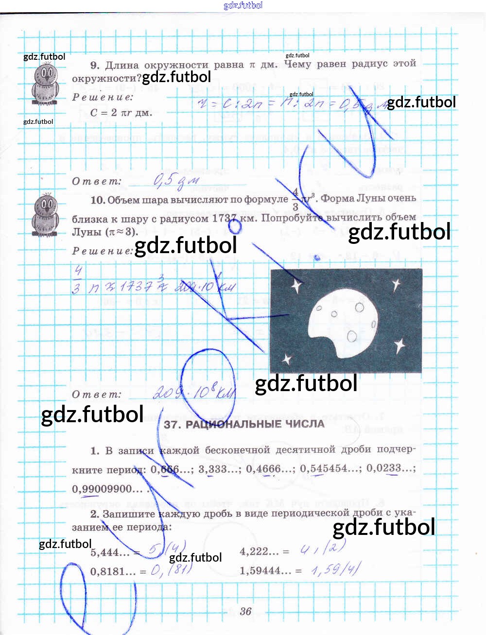 Готовые домашние задания по Математике за 6 класс Рудницкая Рабочая тетрадь УМК 2013 ФГОС - Часть 2. Страницы 36
