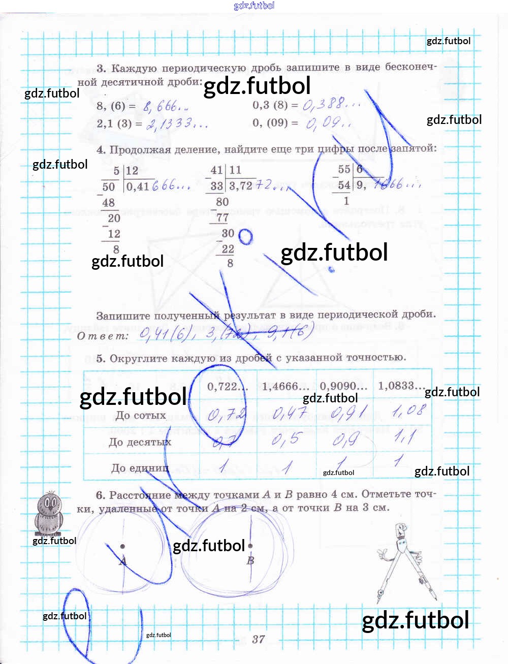 Готовые домашние задания по Математике за 6 класс Рудницкая Рабочая тетрадь УМК 2013 ФГОС - Часть 2. Страницы 37