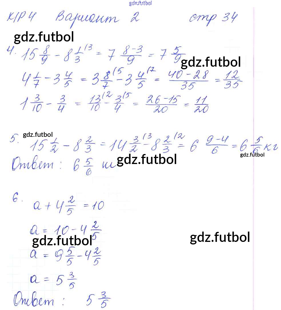 Готовые домашние задания по Математике за 6 класс Рудницкая Рабочая тетрадь УМК 2013 ФГОС - Часть 1. Страницы 34