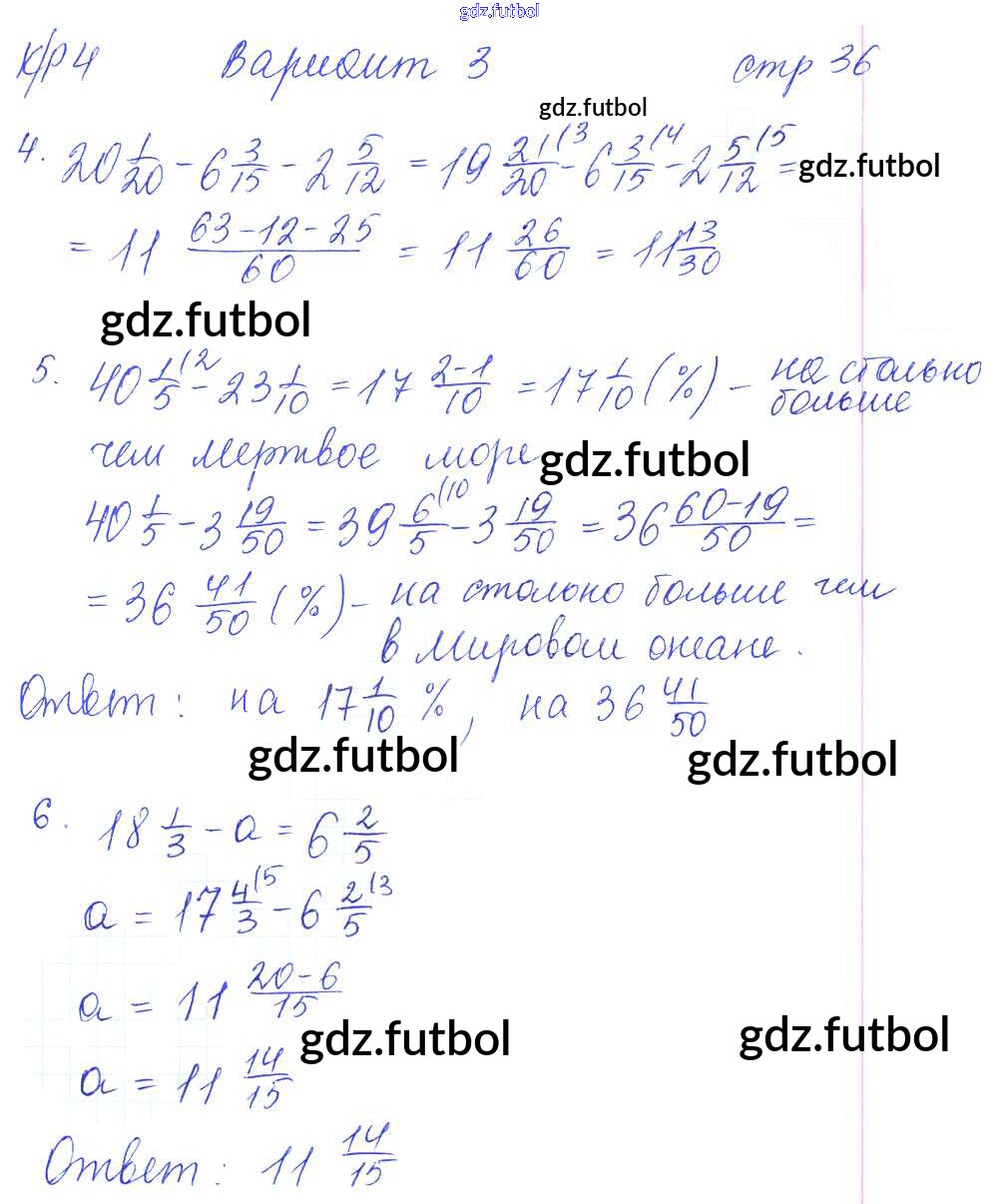 Готовые домашние задания по Математике за 6 класс Рудницкая Рабочая тетрадь УМК 2013 ФГОС - Часть 1. Страницы 36