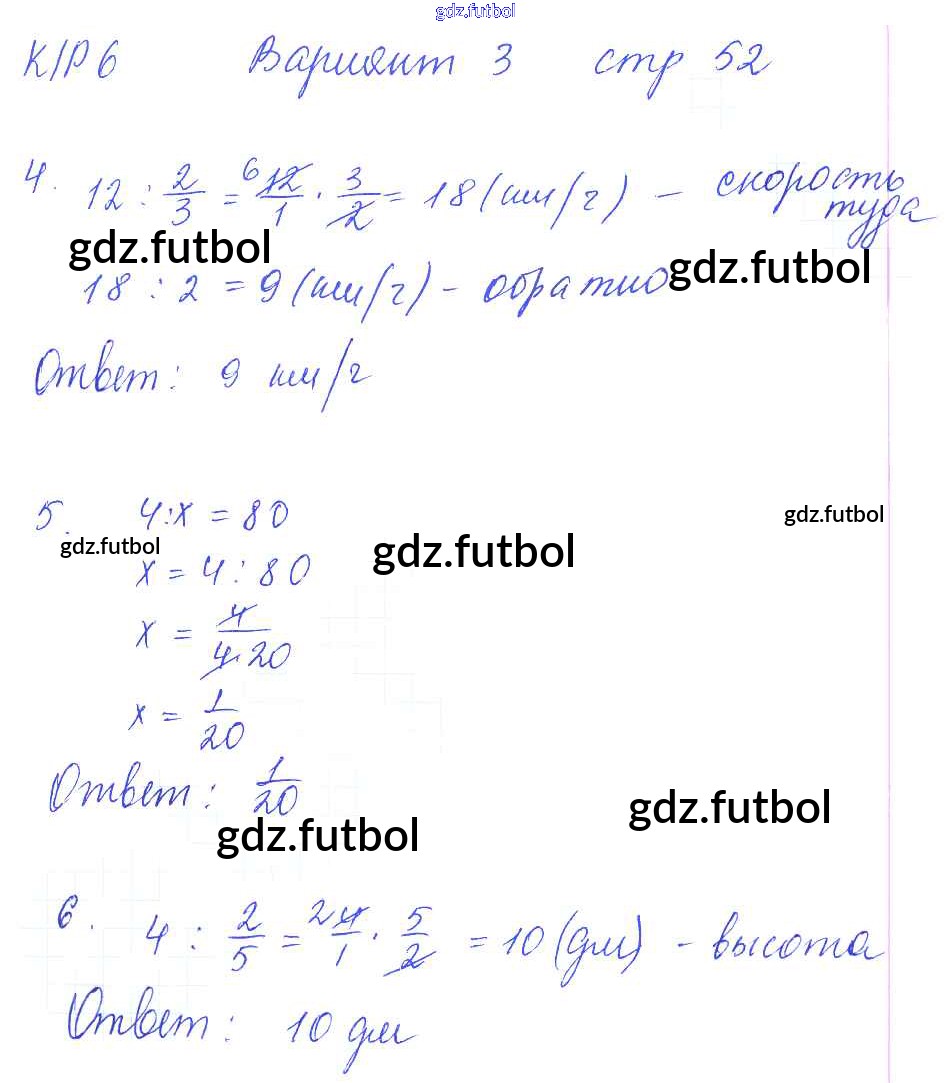 Готовые домашние задания по Математике за 6 класс Рудницкая Рабочая тетрадь УМК 2013 ФГОС - Часть 1. Страницы 52
