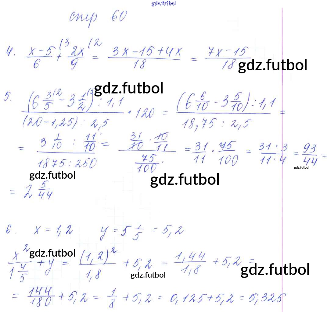 Готовые домашние задания по Математике за 6 класс Рудницкая Рабочая тетрадь УМК 2013 ФГОС - Часть 1. Страницы 60