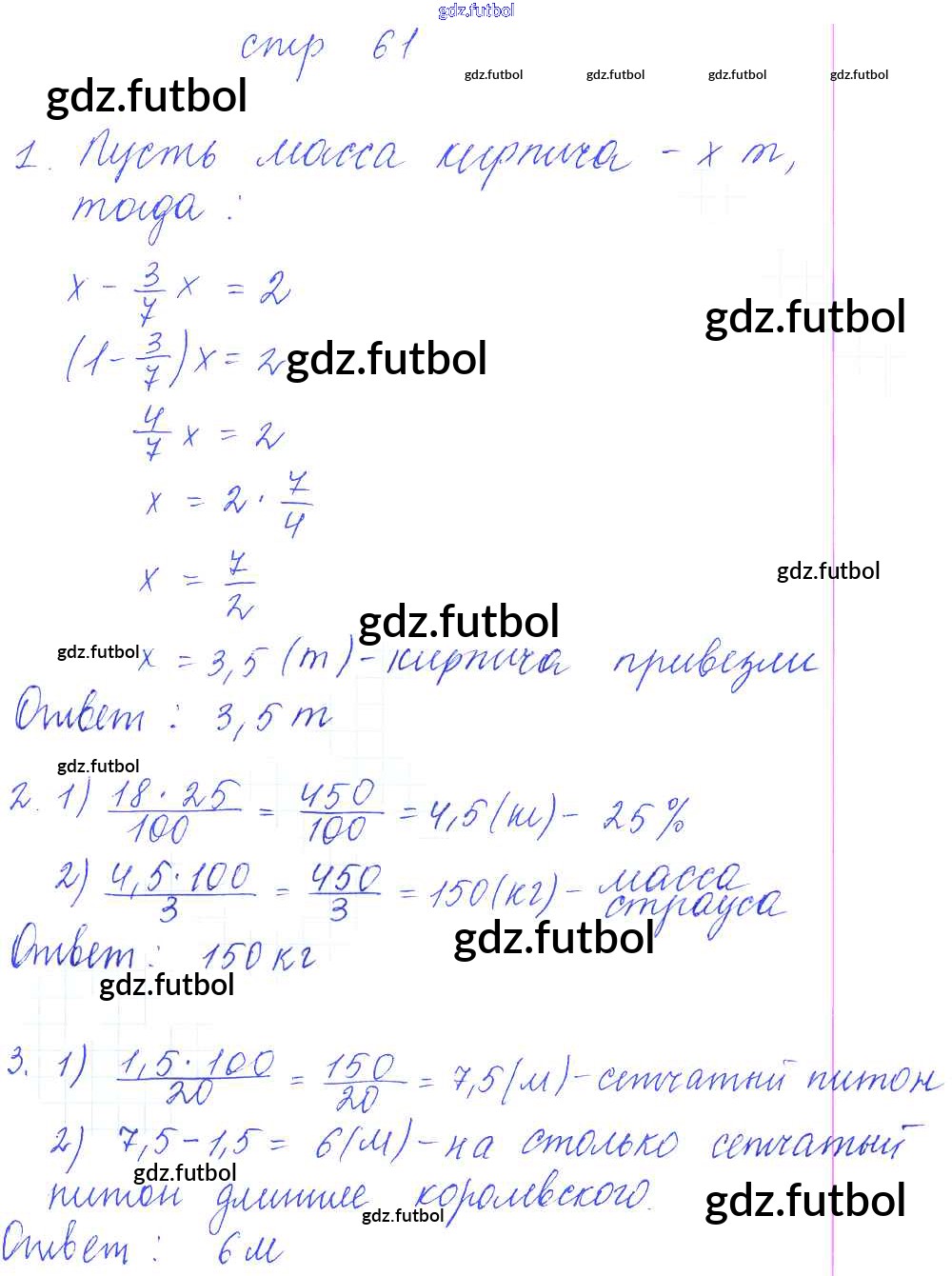 Готовые домашние задания по Математике за 6 класс Рудницкая Рабочая тетрадь УМК  2013 ФГОС - Часть 1. Страницы 61