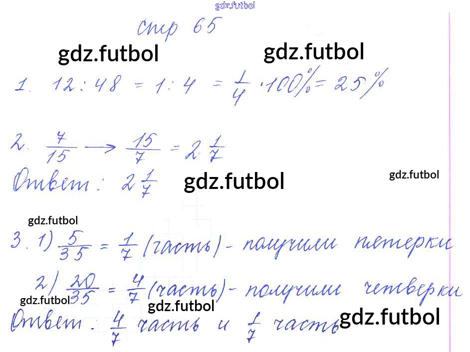 Готовые домашние задания по Математике за 6 класс Рудницкая Рабочая тетрадь УМК 2013 ФГОС - Часть 1. Страницы 65