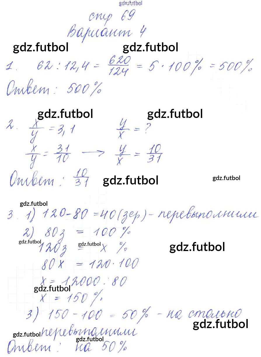 Готовые домашние задания по Математике за 6 класс Рудницкая Рабочая тетрадь УМК 2013 ФГОС - Часть 1. Страницы 69