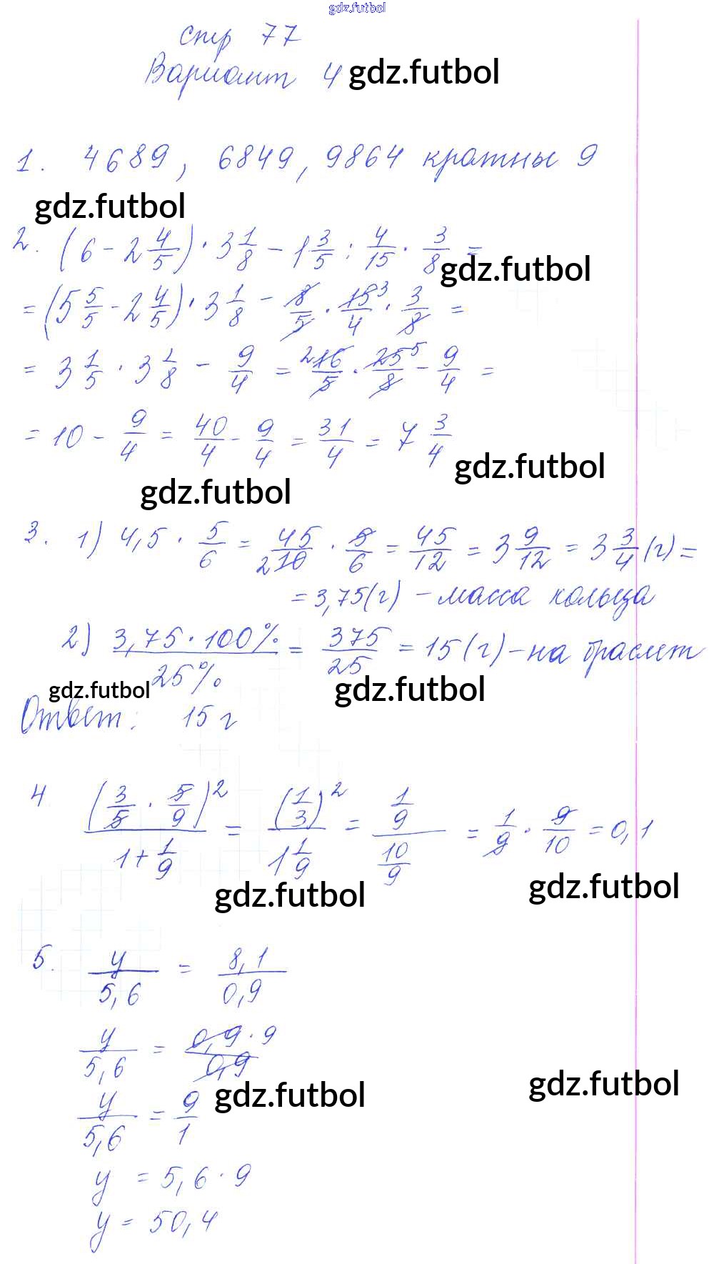 Готовые домашние задания по Математике за 6 класс Рудницкая Рабочая тетрадь УМК 2013 ФГОС - Часть 1. Страницы 77