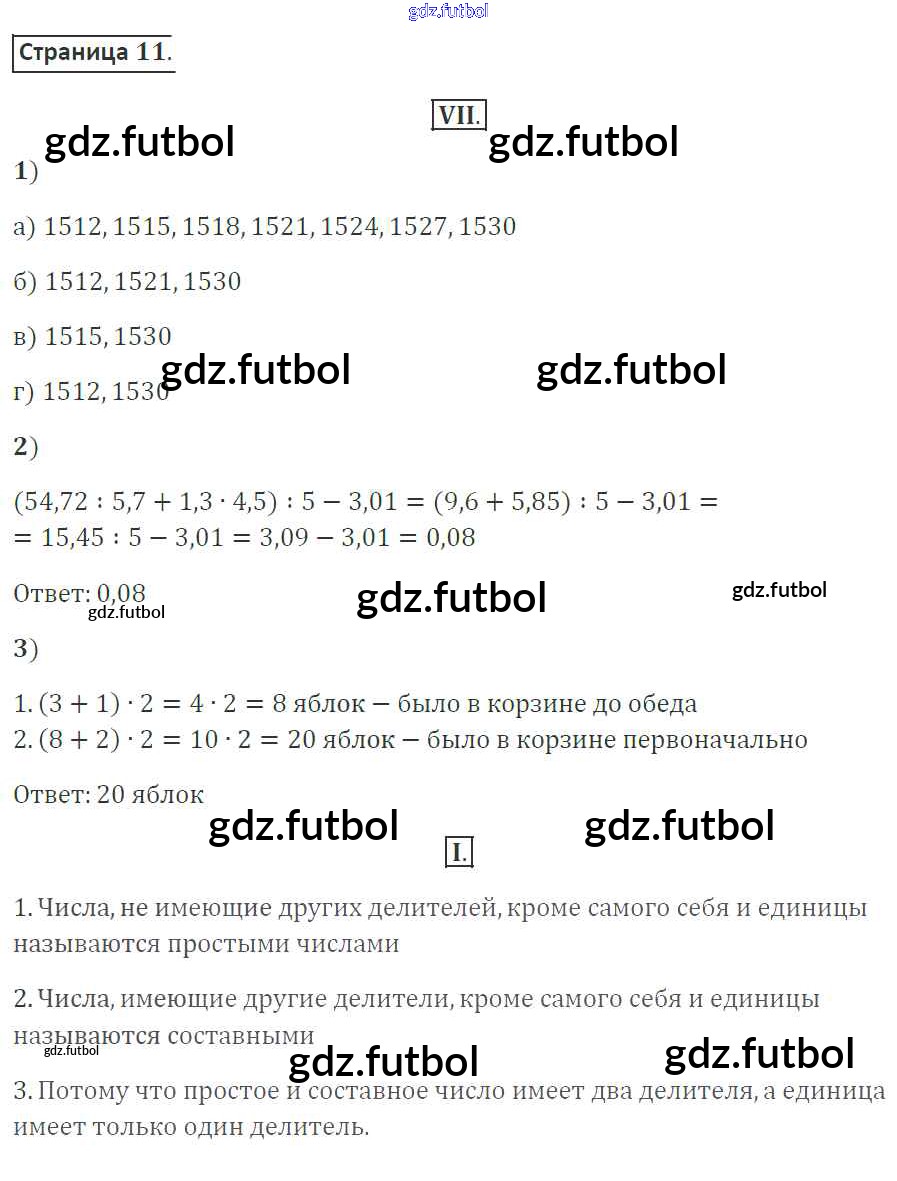 Готовые домашние задания по Математике за 6 класс Ерина Рабочая тетрадь УМК 2017 ФГОС - Часть 1. Страницы 11