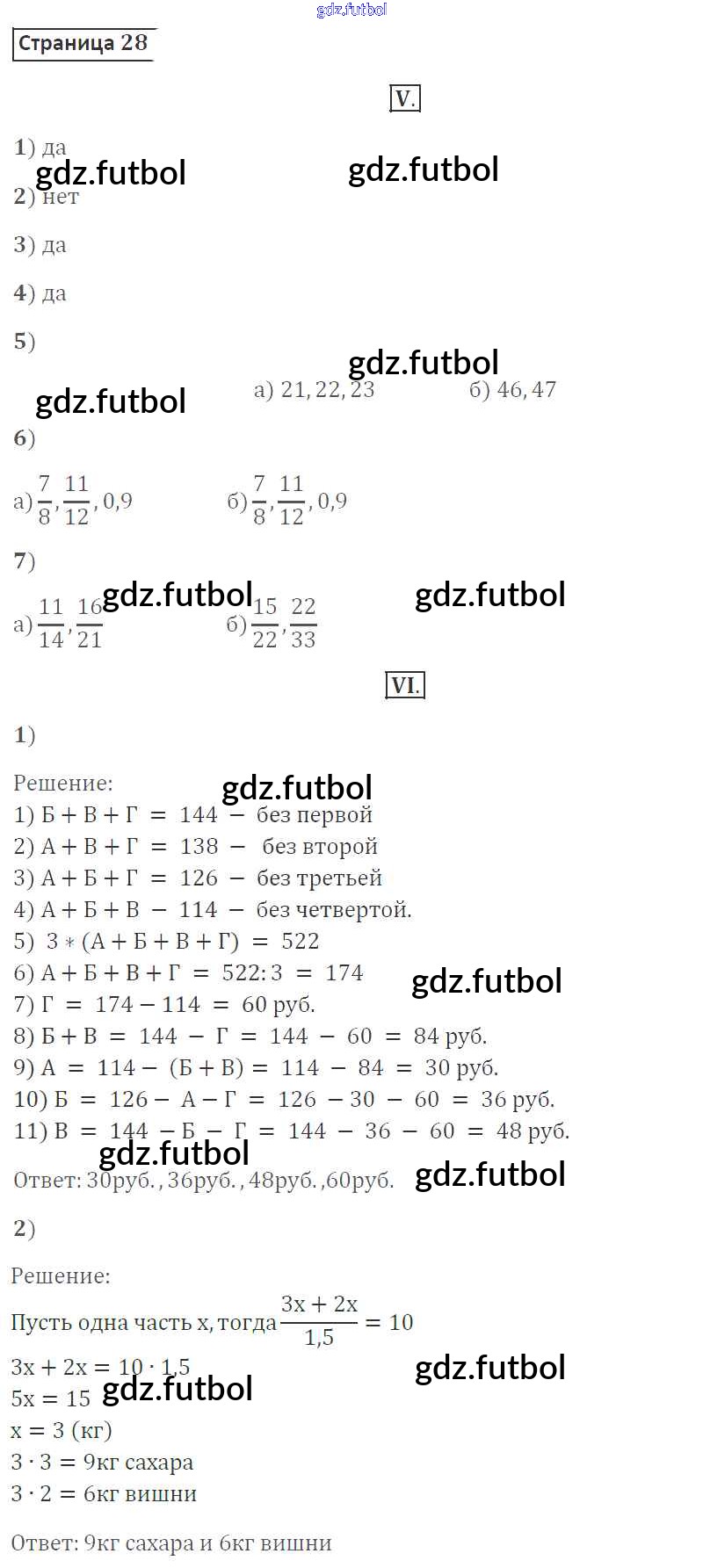 Готовые домашние задания по Математике за 6 класс Ерина Рабочая тетрадь УМК 2017 ФГОС - Часть 1. Страницы 28