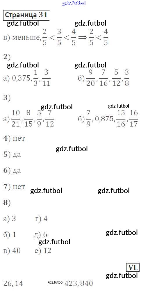 Готовые домашние задания по Математике за 6 класс Ерина Рабочая тетрадь УМК 2017 ФГОС - Часть 1. Страницы 31