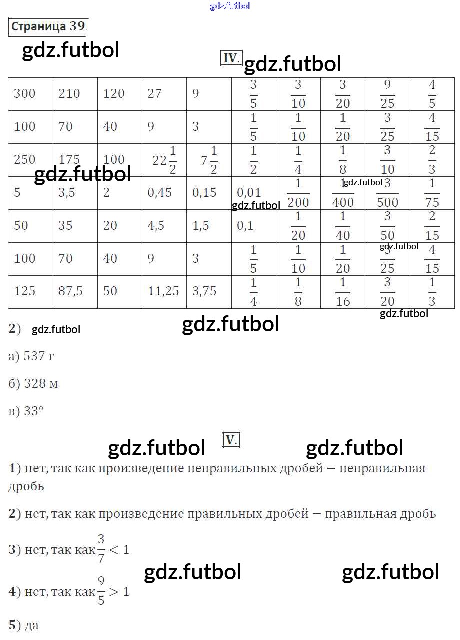 Готовые домашние задания по Математике за 6 класс Ерина Рабочая тетрадь УМК 2017 ФГОС - Часть 1. Страницы 39