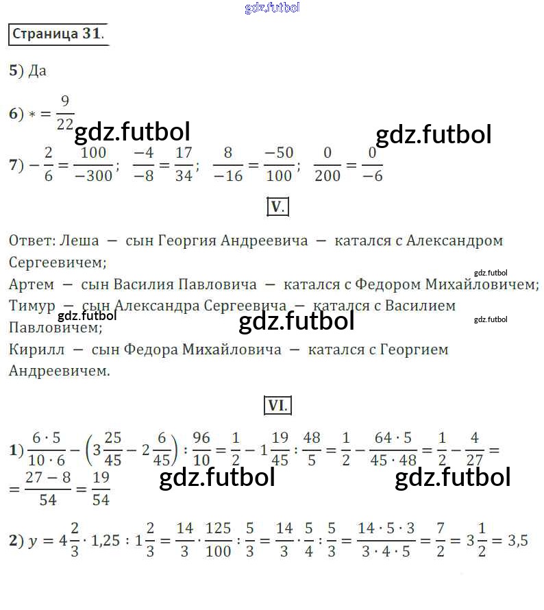 Готовые домашние задания по Математике за 6 класс Ерина Рабочая тетрадь УМК 2017 ФГОС - Часть 2. Страницы 31