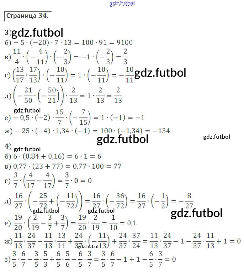 Готовые домашние задания по Математике за 6 класс Ерина Рабочая тетрадь УМК 2017 ФГОС - Часть 2. Страницы 34