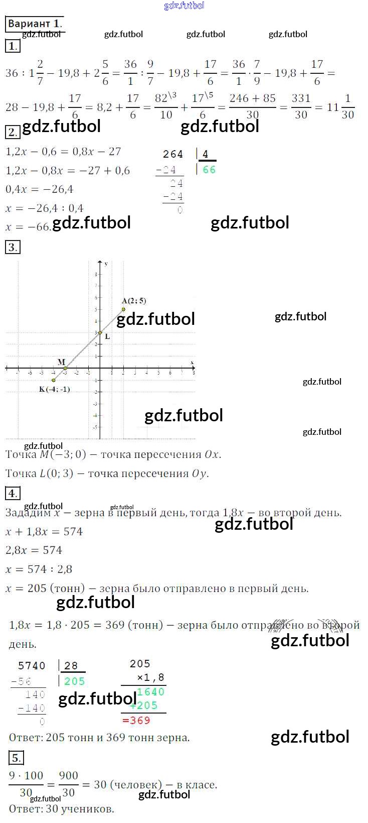 Готовые домашние задания по Математике за 6 класс Жохов Контрольные работы 2011 ФГОС - Итоговая контрольная работа 1
